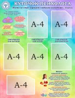 Стенд «Поради психолога» (Артикул: 3-2156) Характеристики Розмір: 1100мм.×660мм. Матеріал: пластик товщиною 3 мм. Вартість: 1064 грн. Швидке замовлення Короткий опис стенда(ів) Стенд під назвою "Поради психолога" призначений для надання психологічної підтримки учням. У ньому містяться різні рубрики, такі як "Важливо знати" та "Це актуально", які пропонують цінні поради та інформацію. Основна цитата закликає бути собою та шукати свій шлях: "Будь самим собою, шукай свій шлях. Пізнай себе першим, ніж захочеш пізнати інших." – Р. Корчак. Рекомендації для подолання тривоги, контроль за диханням та зняття м'язової напруги. Вказівки щодо ситуацій, коли варто звернутися до шкільного психолога, наприклад, якщо виникають конфлікти або відчуваєш дискомфорт. Додаткова інформація Термін виготовлення: 3-5 робочих днів. Можливість ламінування: Немає. 🖨️ Друкувати Зачекайте, будь ласка ⚖️
