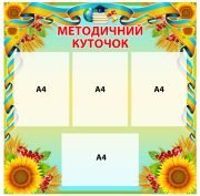 Стенд «Методичний куточок» (Артикул: 3-2234) Характеристики Розмір: 800мм.×800мм. Матеріал: пластик товщиною 3 мм. Вартість: 1003 грн. Швидке замовлення Короткий опис стенда(ів) Стенд "Методичний куточок" призначений для організації та зберігання навчально-методичних матеріалів у освітніх закладах. Він містить шість відділень формату А4, що дозволяє розмістити важливу інформацію для викладачів та студентів. Яскравий дизайн із соняшником та стрічками створює приємну атмосферу та привертає увагу. Цей стенд допоможе підтримувати порядок та зручний доступ до інформаційних матеріалів, сприяючи ефективності навчального процесу. Додаткова інформація Термін виготовлення: 3-5 робочих днів. Можливість ламінування: Немає. 🖨️ Друкувати Зачекайте, будь ласка ⚖️