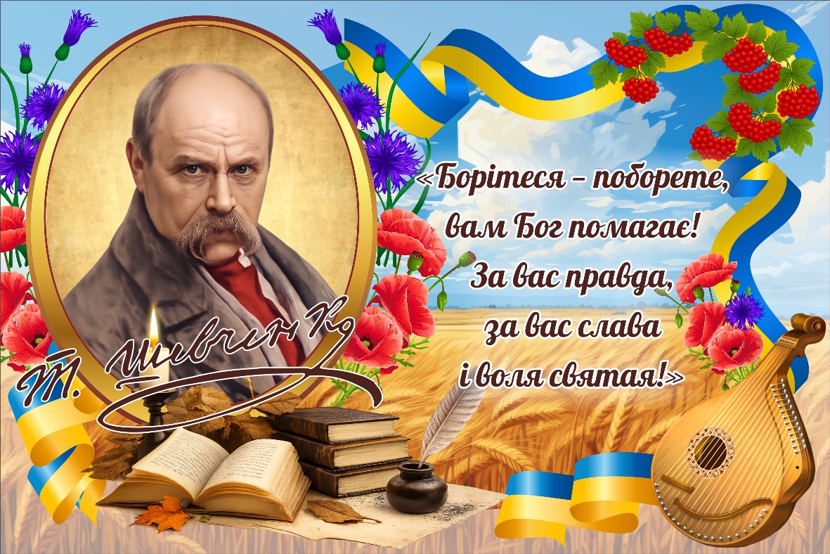Пластиковий стенд «Борітеся – поборете» (Артикул: 3-0996) Характеристики Розмір: 600мм.×400мм. Матеріал: пластик товщиною 3 мм. Вартість: 349 грн. Швидке замовлення Короткий опис стенда(ів) Стенд присвячений видатному українському поету та художнику Тарасу Шевченку. На стенді зображено портрет Шевченка, його підпис та тема української культури. Оточення квітів, стиглого пшеничного поля та національних символів підкреслює патріотичний настрій. На стенді також наведено цитату Шевченка: «Борітеся — поборете, вам Бог помагає! За вас правда, за вас слава і воля святая!», яка закликає до боротьби за правду та незалежність. Цей стенд може бути частиною освітнього закладу для вшанування пам’яті поета та популяризації української літератури та культури. Додаткова інформація Термін виготовлення: 3-5 робочих днів. Можливість ламінування: Немає. 🖨️ Друкувати Зачекайте, будь ласка ⚖️