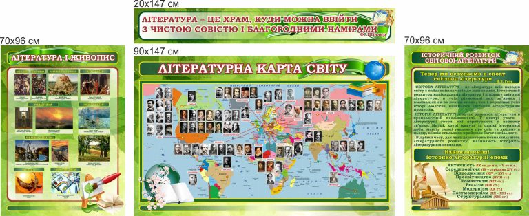 Правильне оформлення класу створює сприятливий психологічний клімат для навчання. Стенди для школи можуть включати різноманітні елементи, такі як літературні карти, історичні огляди, а також інформацію про відомих письменників.