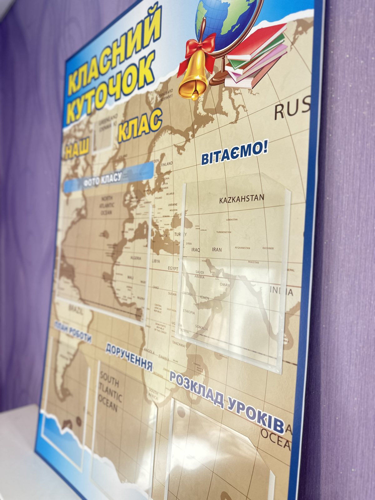 Стенд “Класний куточок” (Артикул: 3-0147) Характеристики Розмір: 600мм.×850мм. Матеріал: пластик товщиною 3 мм. Вартість: 871 грн. Швидке замовлення Короткий опис стенда(ів) Стенд "Класний куточок" призначений для відображення важливої інформації про клас. Розділи стенду: Наш клас: Представлення класу. Фото класу: Місце для розміщення загального фото. Вітаємо: Секція для привітань та оголошень. План роботи: Відображення планів на навчальний рік або поточний тиждень. Доручення: Розподіл обов'язків між учнями. Розклад уроків: Секція для розкладу занять. Цей стенд допомагає організувати навчальний процес та інформувати учнів про важливу інформацію. Додаткова інформація Термін виготовлення: 3-5 робочих днів. Можливість ламінування: Немає. 🖨️ Друкувати Зачекайте, будь ласка ⚖️